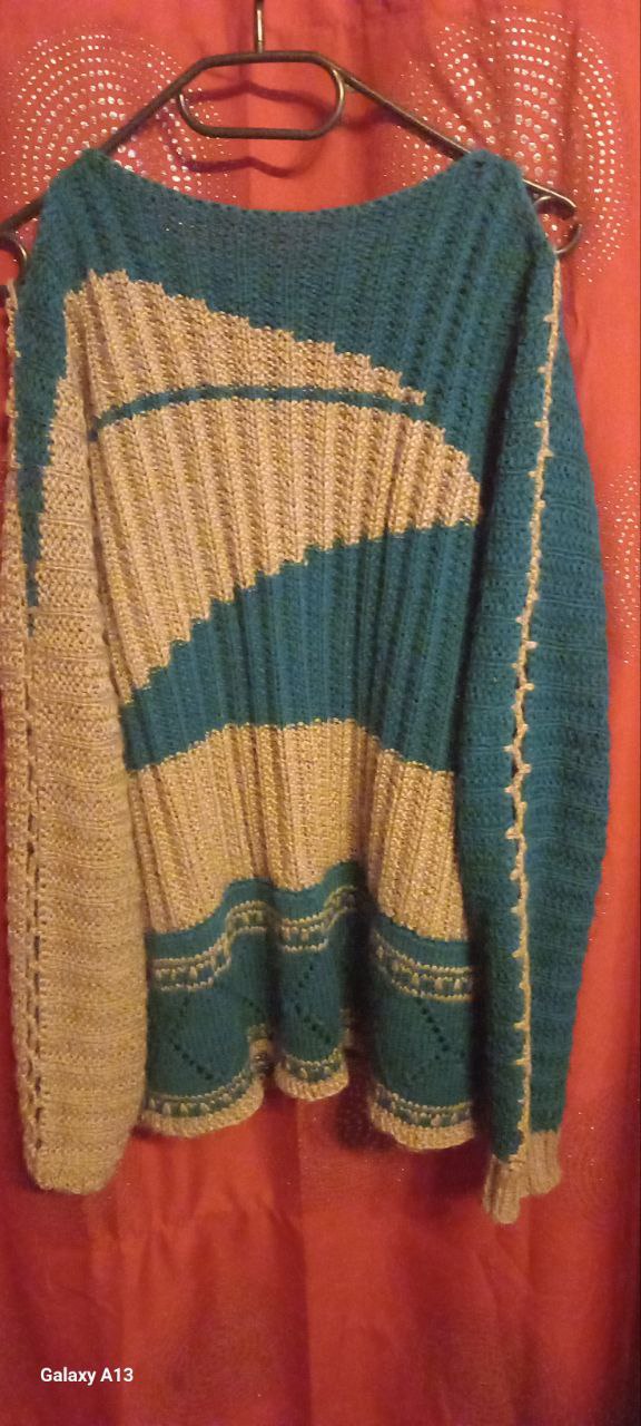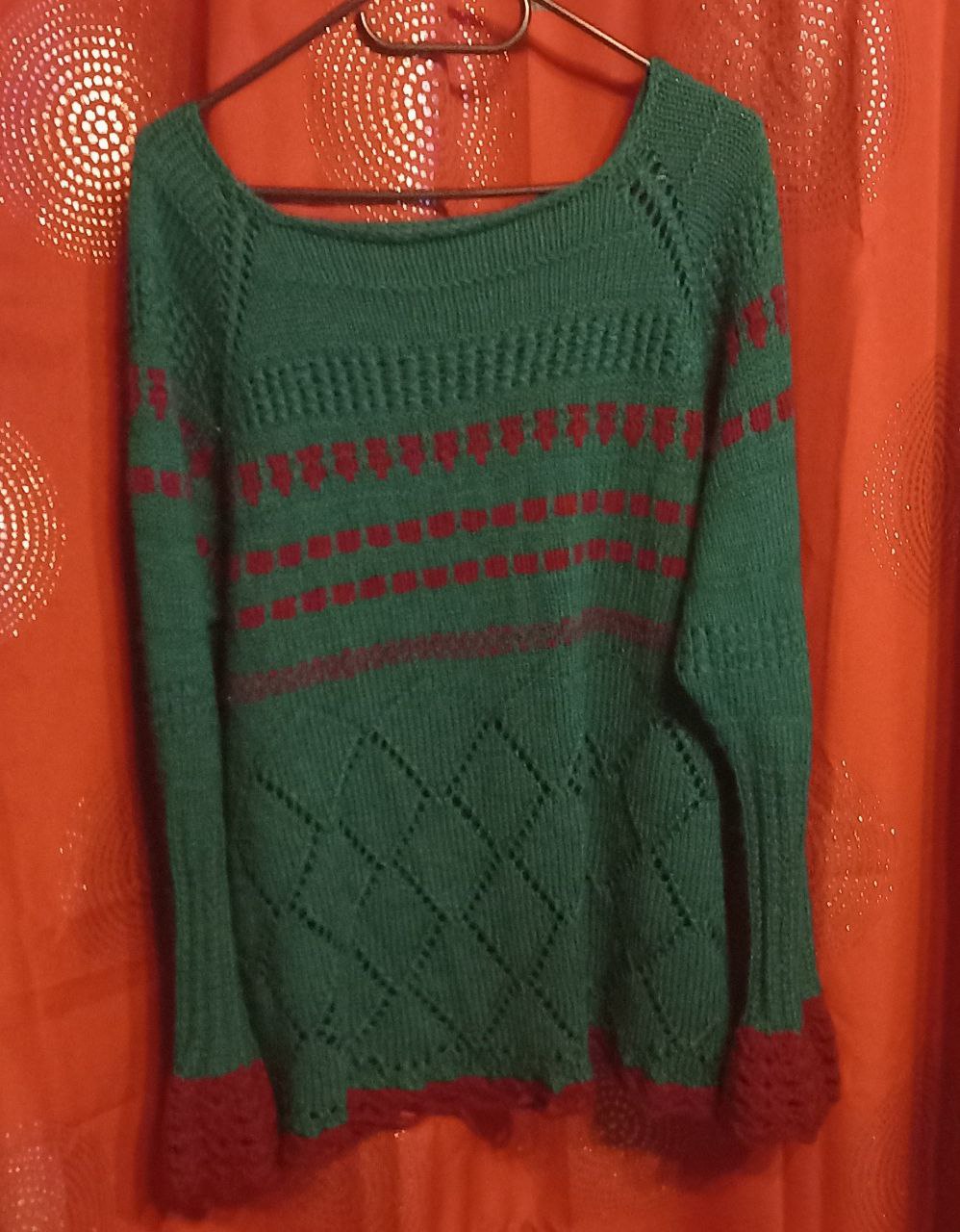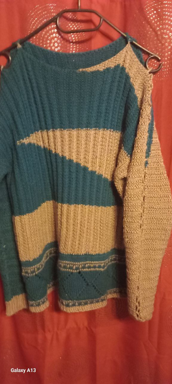 Pullover vorder und Rückseite grün beige