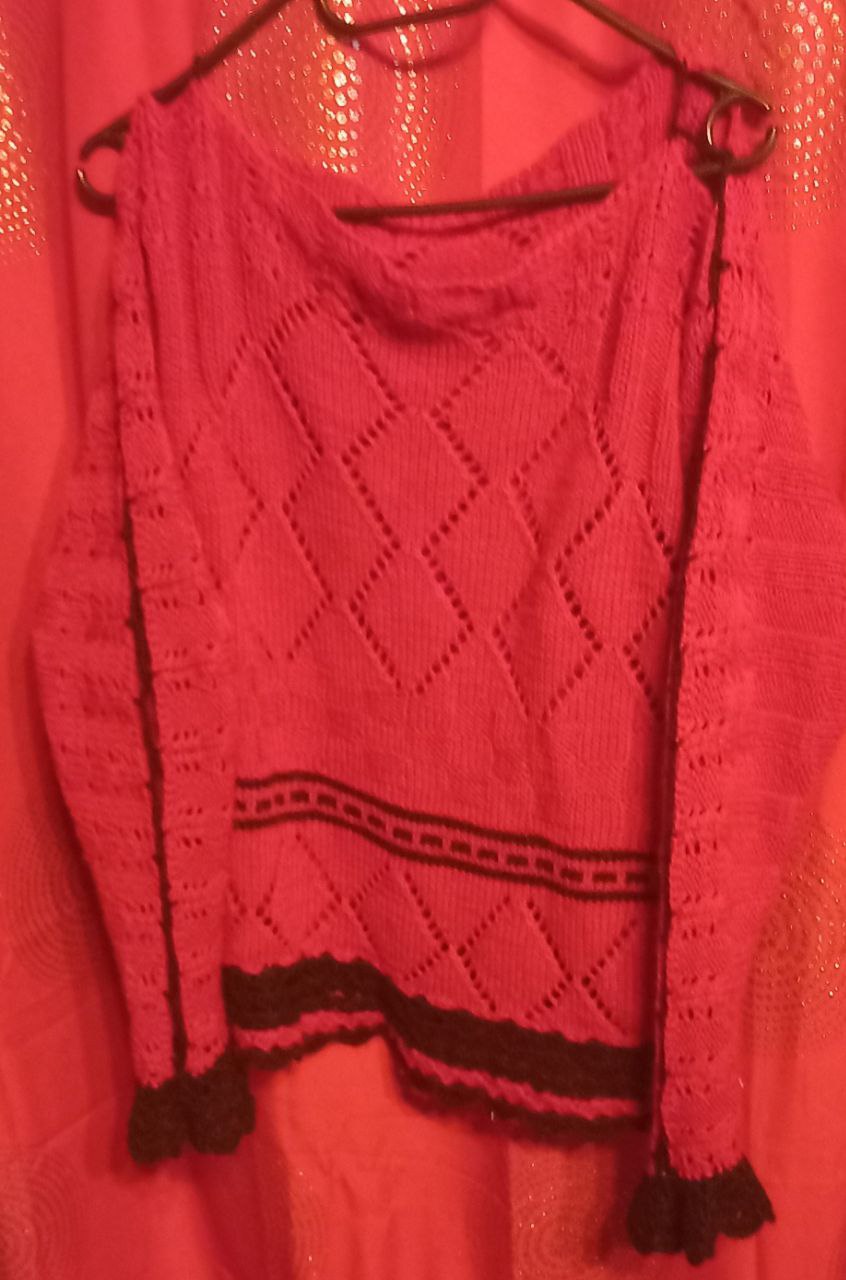 Pullover schwarz, weiß, rot